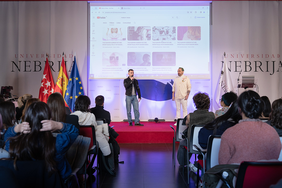 Con más de treinta años de experiencia y habiendo trabajado para algunas de las mejores empresas del mundo en el ámbito de la moda, el diseñador Maison Mesa fue el docente de lujo de los estudiantes del Grado en Diseño de Moda de la Facultad de Comunicación y Artes de la Universidad Nebrija. En él, realizó un repaso por su extensa trayectoria profesional y ofreció a los avezados estudiantes valiosos consejos para triunfar en un sector tan competitivo como es el de la moda.