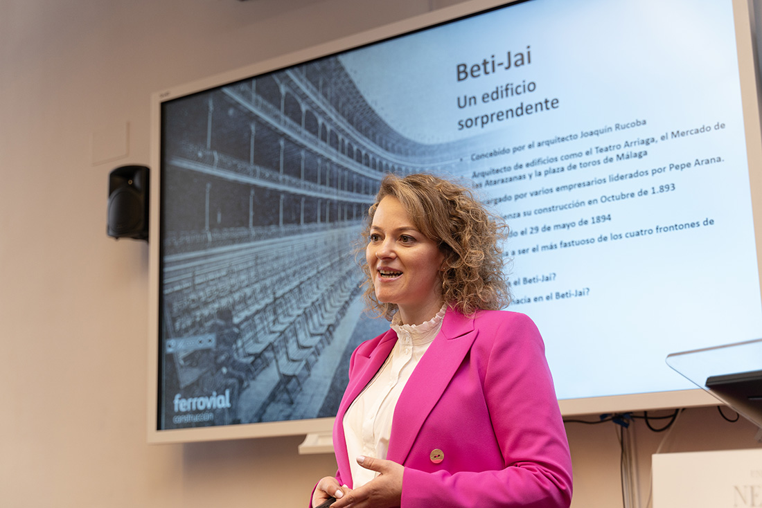Con el apoyo documental de la Plataforma Salvemos el Frontón Beti-Jai, la experiencia del equipo de rehabilitación y una buena capa de “ingenio agudizado”, Soler y Gutiérrez Cecilia explicaron, con una dilatada exposición de imágenes del antes y el después, el “complejo” proceso de restauración de las fachadas, las escaleras, adornos como los lambrequines, y la estructura en general. Salvaron el 95 % de las viguetas originales y repusieron los elementos irrecuperables o perdidos gracias a que siempre encontraron alguna muestra original de la construcción a partir de la cual pudieron recrear el resto de las piezas. “Estamos ante un edificio con estrella”, dijeron aludiendo a la crónica de la inauguración de Beti-Jai, escrita por Antonio Peña y Goñi, en la revista El Pelotari del 29 de mayo de 1894: Beti-Jai nace con buena estrella, puesto que, antes de nacer, ha tenido y tiene enemigos encarnizados. ¡Que el cielo se los conserve y se los aumente al flamante frontón y a su conspicua empresa, para que se diga de ellos lo más tarde posible: Dios te libre de la hora de las alabanzas!
