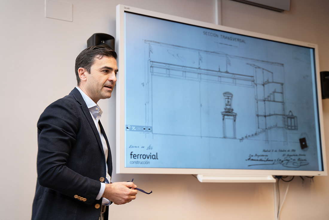 De la vuelta a la vida de esta “joya secreta”, levantada por el arquitecto Joaquín Rucoba y encargada por varios empresarios liderados por Pepe Arana, de esta “rareza arquitectónica”, de este “edificio sorprendente” situado en la calle Marqués de Riscal número 7, hablaron Laura Soler y César Gutiérrez Cecilia, jefes de Obra de Edificación de Ferrovial Construcción (Madrid) en la Universidad Nebrija durante una charla organizada por Fernando Moral, director del Departamento de Arquitectura, y José Daniel García Espinel, responsable de Construcción Digital de la Politécnica Nebrija (Departamento de Arquitectura).
