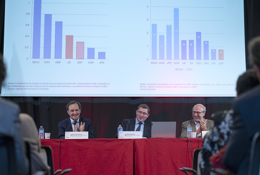 La “imperiosa” reducción de la dependencia energética externa de la Unión Europea, aunque en el medio plazo el coste de la energía siga siendo “más elevado” que en otras zonas, y el aumento del gasto en I+D del sector privado fueron otros de los puntos de vista que subrayó Gavilán en su ponencia.