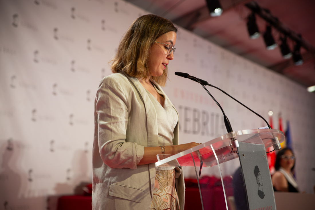 Una vez todo el mundo estuvo acomodado, dio inicio una ceremonia que, lejos de un mero acto institucional, contó con momentos tan especiales como una actuación musical sorpresa, discursos de algunos alumnos de la promoción, vídeos hechos especialmente para los alumnos y palabras de reconocimiento por parte de las personalidades más destacadas del entorno académico de Nebrija.