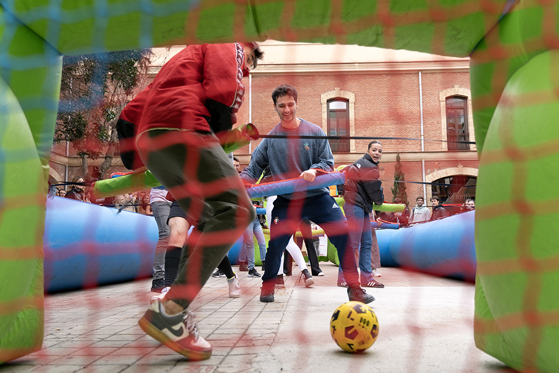 No sabemos si al final entró el balón, lo que sí sabemos es que un futbolín humano de 12 equipos y 72 jugadores convulsionó la jornada de estudios en Campus de la Politécnica y Ciencias Sociales en Madrid-Princesa. En las caras del delantero y de la centrocampista la pasión y la alegría fluyen sin filtros. Sprint, la Jornada de Comunicación Deportiva, tuvo más, pero no nos cabe en un disparo a puerta.
