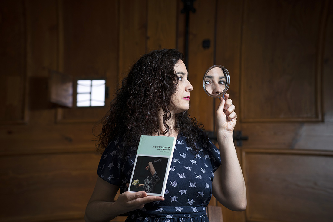 La cara oculta y la inquietante vivencia de los personajes despiertan preguntas a Ianire Doistua, escritora y profesora. Luego las transforma en palabras que encierra en libros como De qué se esconden las tortugas, que acaba de ver la luz. En un intercambio de reflejos, espejos y poses, Zaida y ella componen instantes cerca de la puerta de entrada al campus de Princesa. Por donde casi nunca entra ni sale nadie.