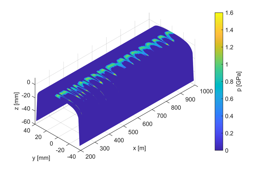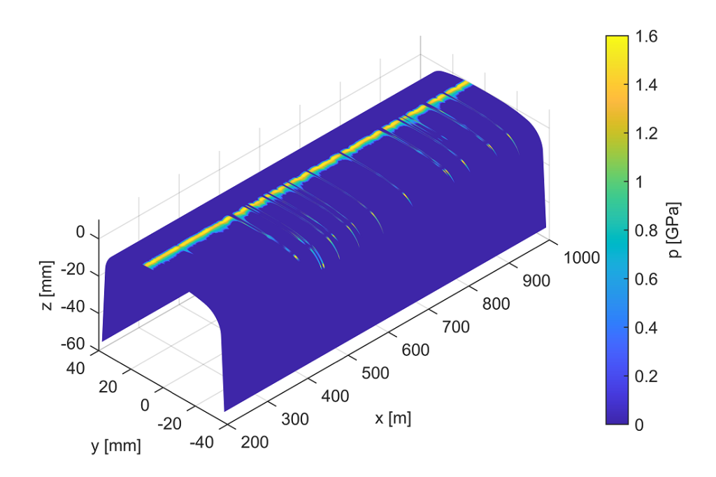 El tema de la investigación de Kaiser es la simulación computacional de la interacción entre un vehículo ferroviario y una vía férrea. En su presentación, el docente de Nerbija mostró la distribución de la presión del contacto rueda-carril sobre la superficie de rodamiento del carril. Las oscilaciones laterales del contacto son una consecuencia del movimiento lateral del eje montado y de las deformaciones del eje montado y del carril como consecuencia de la excitación del vehículo por irregularidades de la vía.