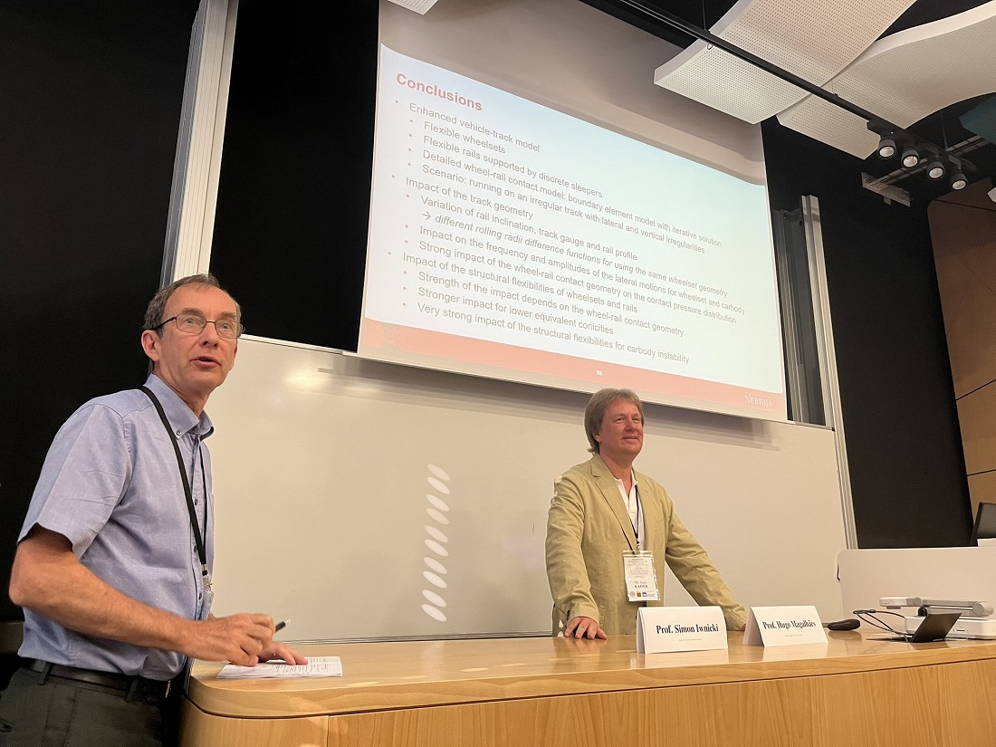 Fotos: Ingo Kaiser y el profesor Simon Iwnicki (Gran Bretaña), uno de los expertos más prestigiosos del mundo en el campo de la dinámica de vehículos ferroviarios. (El otro presidente de la sesión fue Hugo Magalhães de Portugal).
