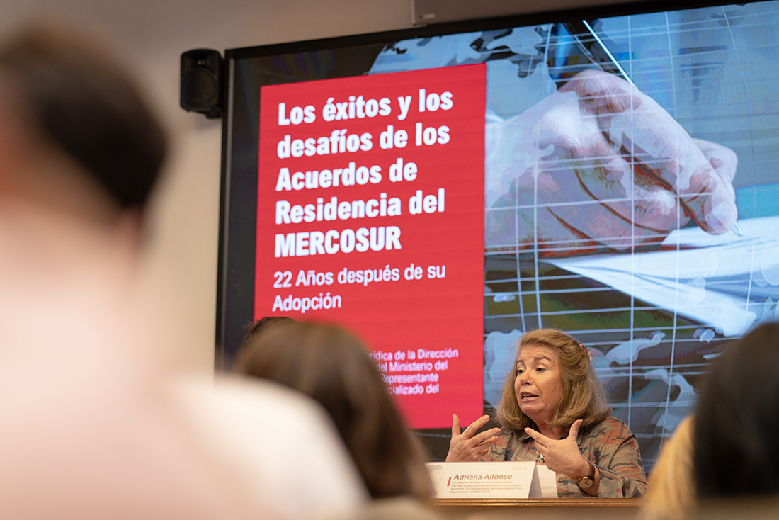 Los Acuerdos de Residencia del MERCOSUR, firmados en el año 2002, han beneficiado a unos cuatro millones de sudamericanos que obtuvieron un permiso de residencia en nueve países de la región. Así lo recordó Adriana Alfonso, que desempeñó un papel fundamental como redactora y negociadora de estos tratados en su cargo de responsable de la Delegación Argentina en la reunión de ministros del Interior del MERCOSUR hace veintidós años.