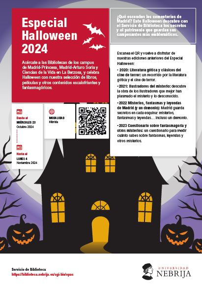 Y si te quedaste con ganas de más en ediciones anteriores, te invitamos como miembro de la Comunidad Nebrija a que vuelvas a disfrutar de las películas y libros que expondremos en cada una de las tres sucursales de la Red de Bibliotecas desde el 23 de octubre al 4 de noviembre.