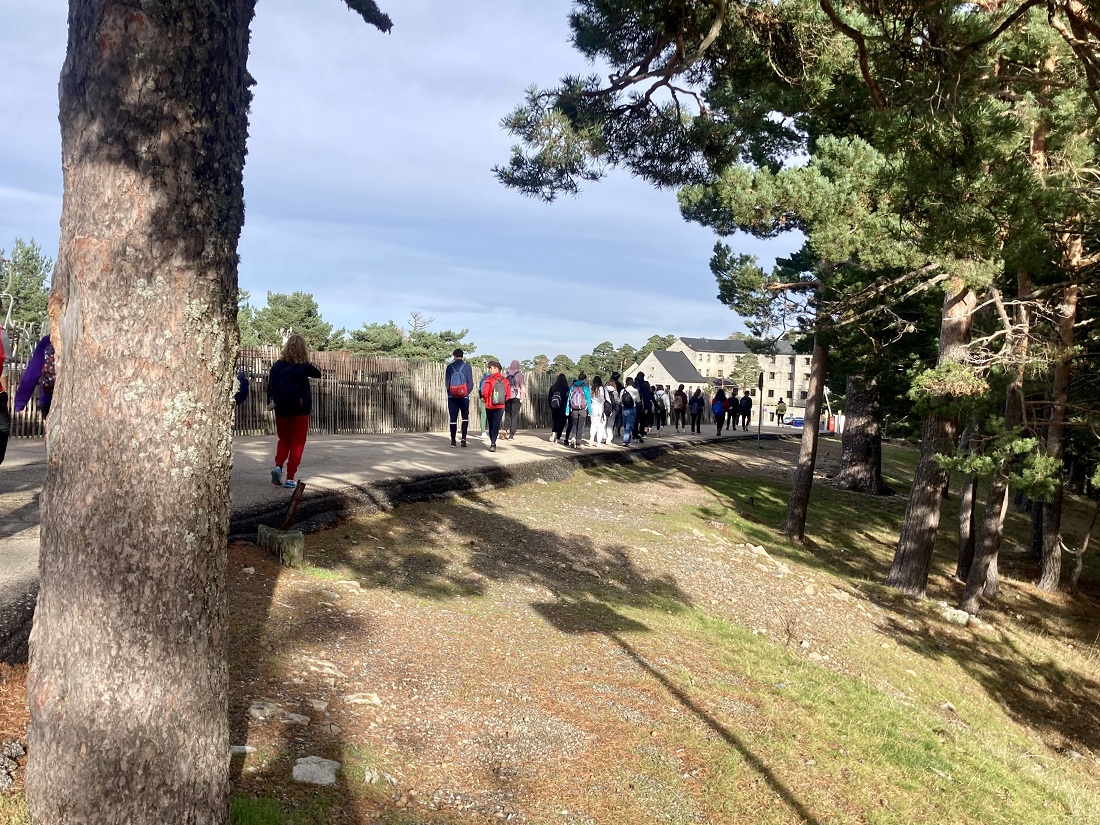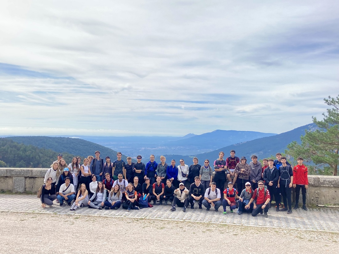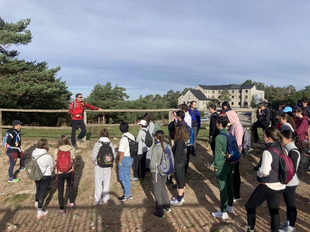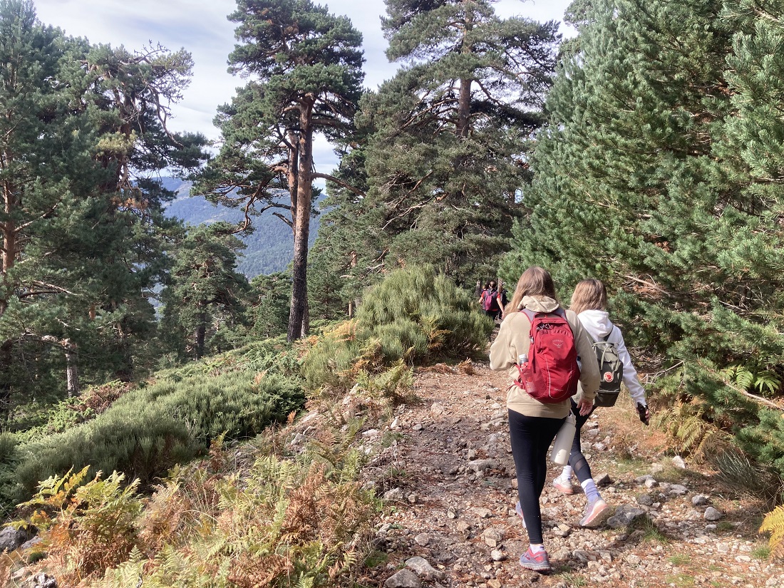 La ruta comenzó en el Puerto de Navacerrada, tomando el Camino Schmid para ascender al Collado Ventoso y tras un breve descanso, alcanzar el Mirador de la Reina para disfrutar de las espectaculares vistas de todo el valle de Fuenfría, Escorial y Abantos. Tras esta parada, alcanzamos el Puerto y Fuente de la Fuenfría, punto por el que transcurre el Camino de Santiago, lugar en el que repusimos fuerzas y desde el cual los estudiantes iniciaron el descenso por la Calzada Romana y la Borbónica que transcurre por todo el valle y finaliza en las Dehesas de Cercedilla, punto final de la jornada tras 13 kilómetros de recorrido.