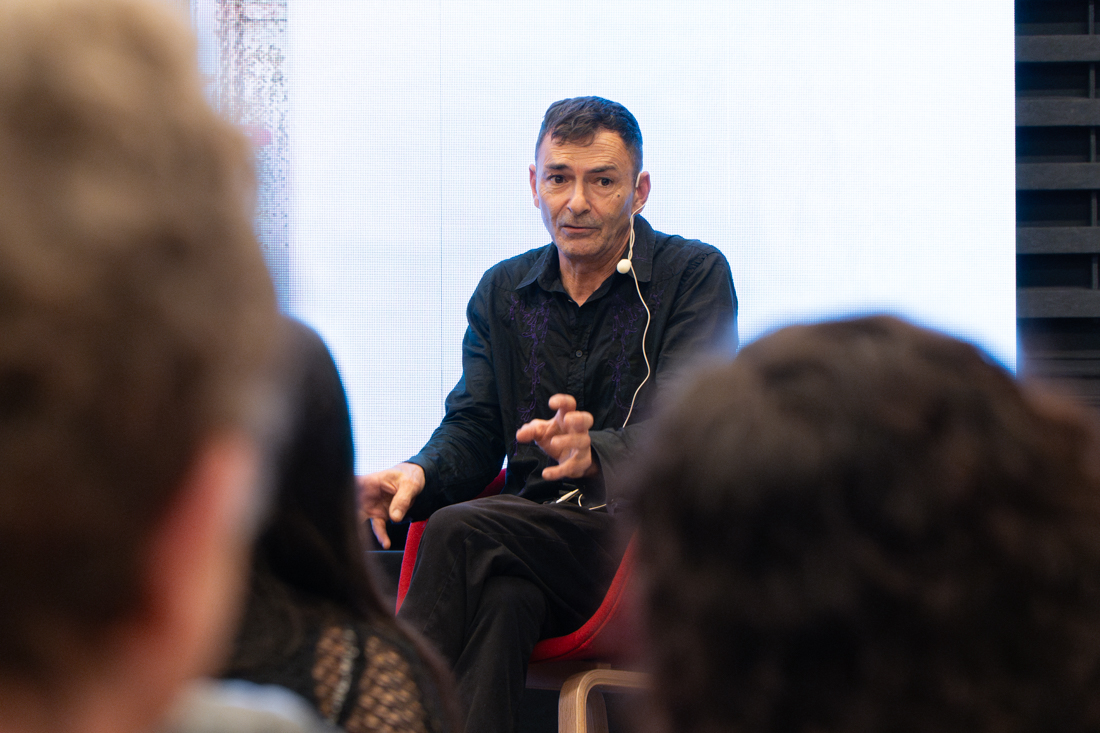 En la jornada también hubo espacio para una clase magistral de Arsenio Rodríguez. Ante los alumnos de Bellas Artes, el artesano de Cádiz recordó que ya desde su infancia recogía plásticos y desperdicios, una práctica que le ayudaba a domar su hiperactividad y a cultivar su imaginación a través del tamiz del arte. “¡Hay que ver los residuos la vida que me han dado para encauzar mí alma! Todo en mi obra es catarsis. Más que artista soy un rescatador y artesano”, certificó.