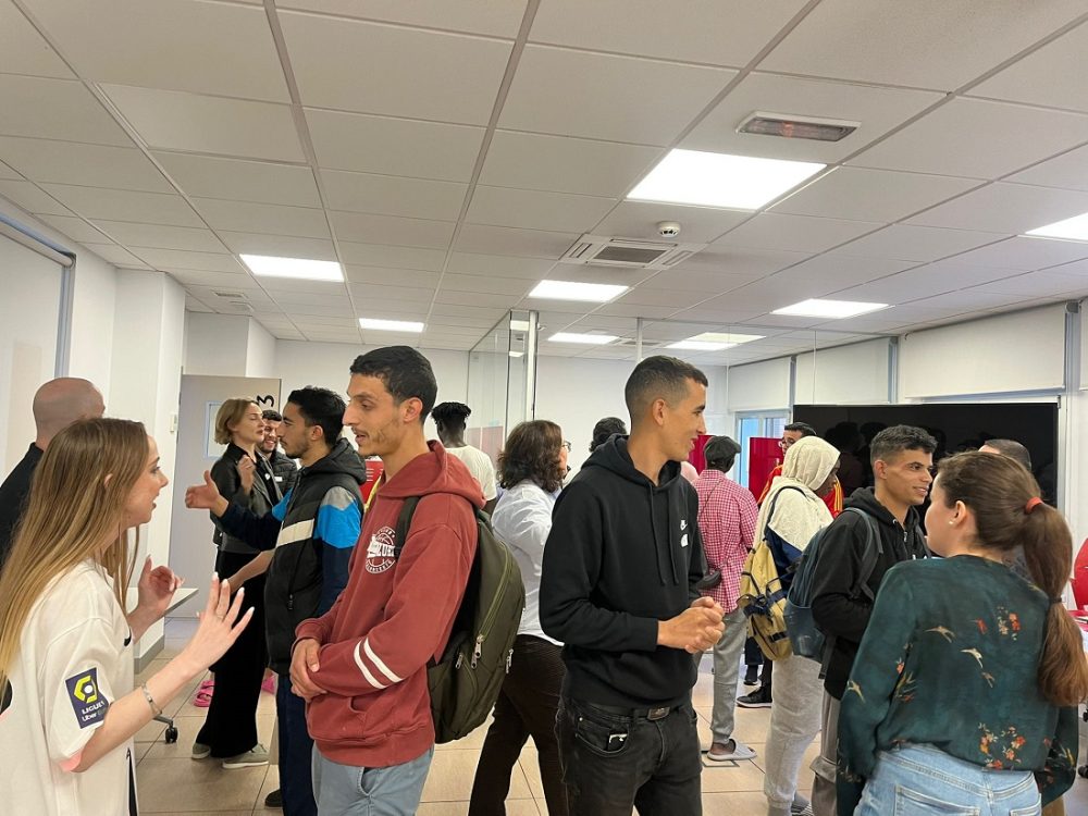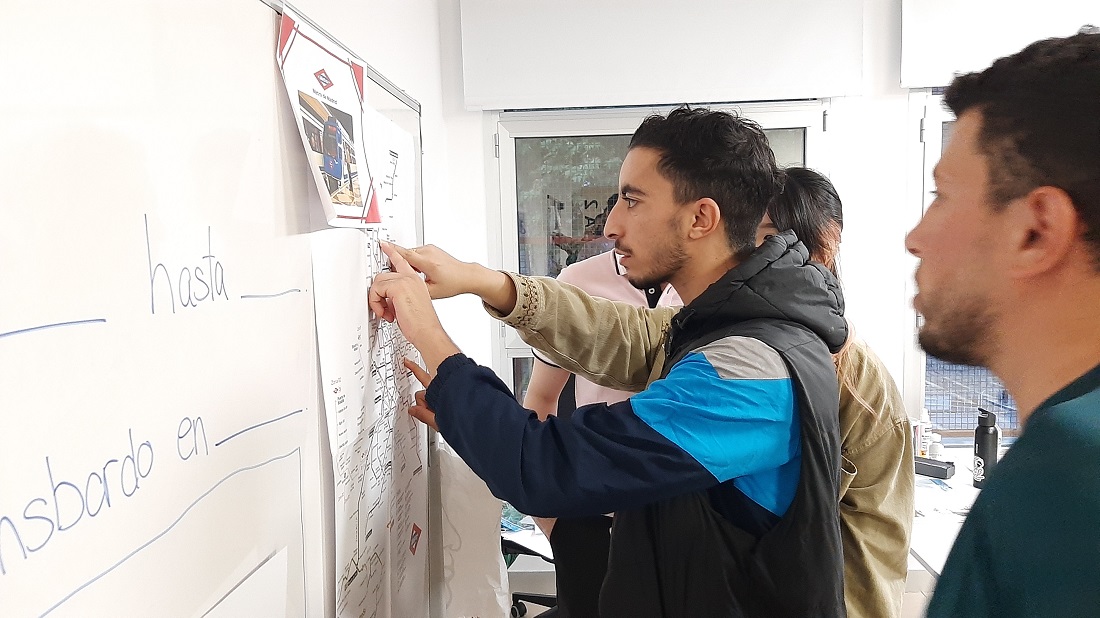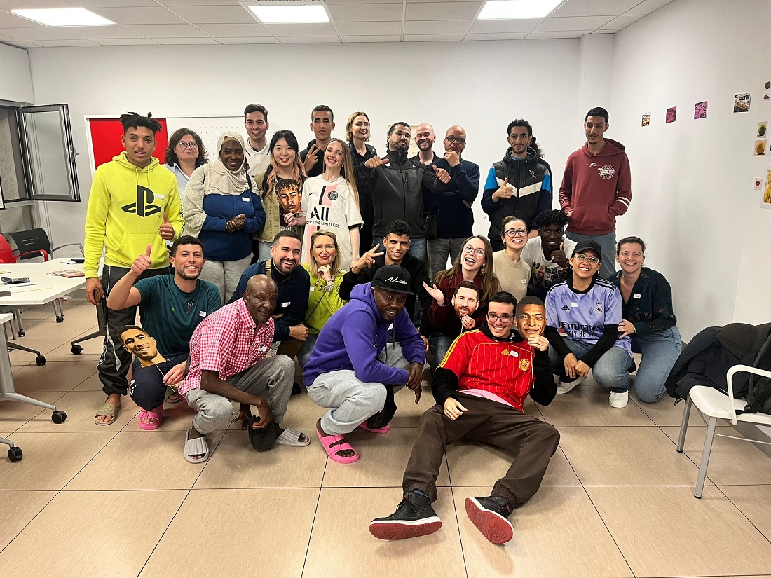 El taller se desarrolló en tres espacios distintos del centro y acogió a 13 participantes de diversas nacionalidades del norte de África, que mostraron un entusiasmo y motivación extraordinarios. Nueve estudiantes del máster asumieron el papel de instructores por unas horas, acompañados por tres Alumni de promociones anteriores y que actualmente son docentes en el Centro de Estudios Hispánicos de Nebrija: Iker González, Raquel Asenjo y Manuela Navas. Juntos diseñaron actividades prácticas para que los participantes pudieran desenvolverse en situaciones cotidianas de la vida en Madrid, tales como el uso del transporte público, la preparación de un menú y la compra en el mercado. También organizaron dinámicas de vocabulario y estrategia relacionadas con el fútbol.
