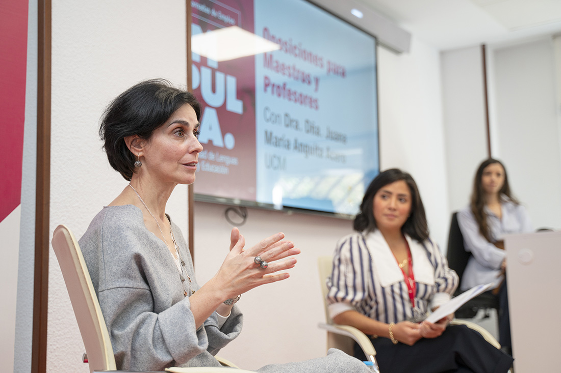 Las temáticas tratadas durante las jornadas han ahondado en asuntos tan variados como la construcción de proyectos educativas en empresas tecnológicas, los distintos perfiles profesionales detrás de un libro de ELE o la labor de los traductores en organismos internacionales, entre otros. “Me parece fantástico que la universidad organice este tipo de encuentros ya que, al final, son muy importantes para nuestro futuro académico y profesional”, declaraba Cristina Romero, alumna del doble Grado en Educación Primaria e Infantil, tras posar sonriente en el espacio de fotografía profesional.