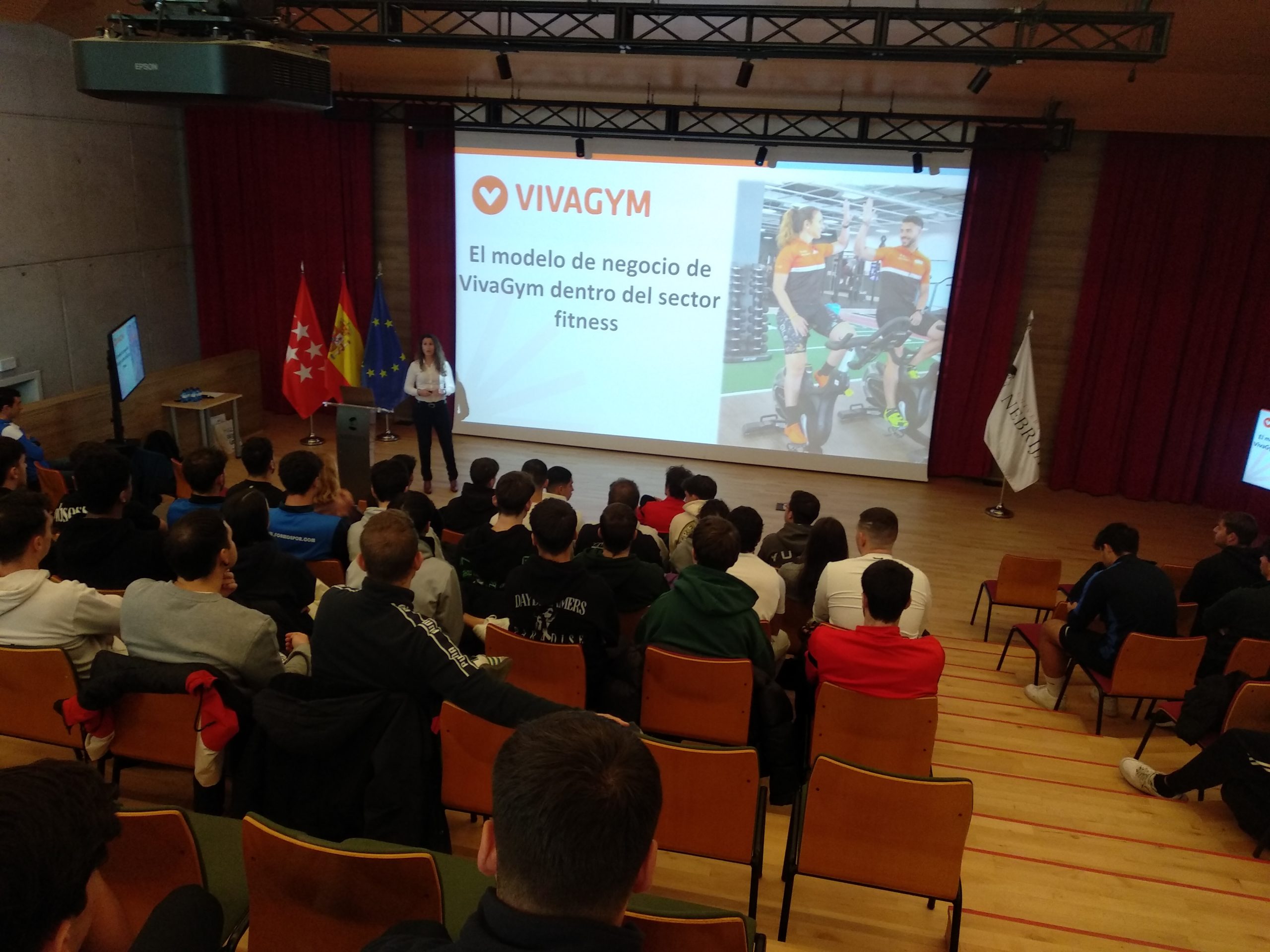 En la segunda charla de la jornada, Rebeca Pino, regional manager de la cadena de gimnasios VIVAGYM explicó “El modelo de negocio de VIVAGMY dentro del sector fitness”, y toda la gama de oportunidades laborales que ofrece esta cadena para recién graduados en Ciencias de la Actividad Física y el Deporte como nuestros estudiantes, ya sea en el itinerario del entrenamiento deportivo como en la gestión de centros fitness.