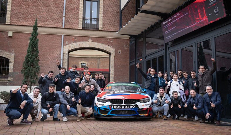 En medio del temporal invernal que atraviesa nuestro país, una presencia inusual atrajo la mirada de los estudiantes que paseaban por el patio del Campus de la Politécnica y Ciencias Sociales en Madrid-Princesa. Allí plantado estaba el BMW M4 GT4, el automóvil del equipo Autoworks Motorsport que ha quedado en tercer puesto en la categoría GT4 Bronce del campeonato europeo Supercars Endurance.