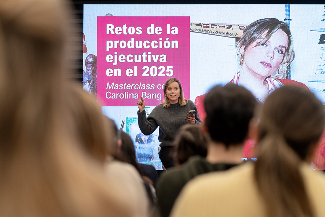 La clase magistral de Carolina Bang se circunscribe a la colaboración de su productora, fundada por ella y el cineasta Álex de la Iglesia, con el Máster en Dirección y Realización de Series de Ficción.