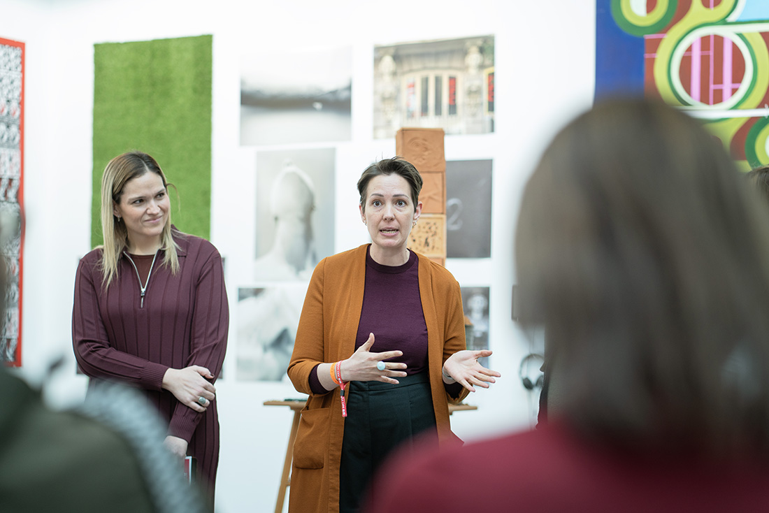 Esta ilusión y esta frescura impulsan a los alumnos a defender su obra y perderse por las galerías de Art Madrid. Blanca Lanaspa, en representación del grupo de veinte artistas jóvenes, le da la razón: “Agradecemos la oportunidad de venir a la feria, instalar nuestra obra y ver los entresijos de la feria”.