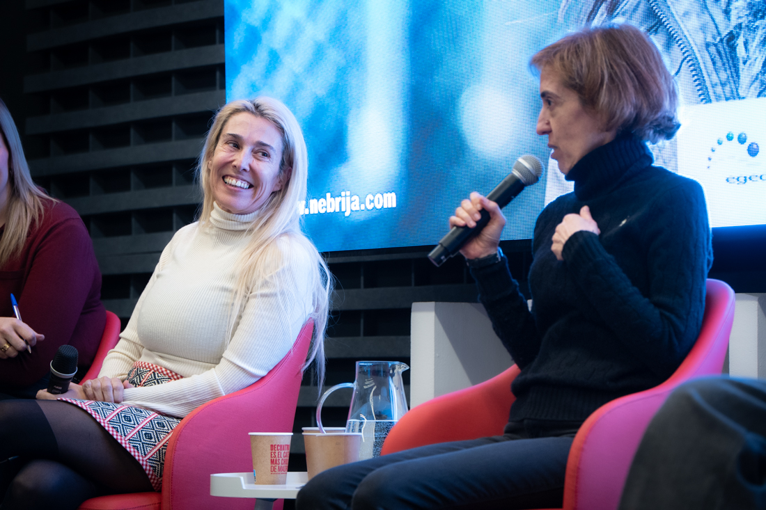 Y precisamente ese espíritu es el que encarna también la Cátedra Nebrija-EGEDA-Platino Educa en Cine, Mujer y Educación (CIMUED), representadas en esta jornada por la investigadora y docente Rocío Gago y la vicedecana de la Facultad de Comunicación y Artes, Marta Saavedra. “Lo que queremos transmitir a los estudiantes es que los proyectos se hacen realidad, que se puede, independientemente del género o del lugar de donde procedas”, afirmó Saavedra.