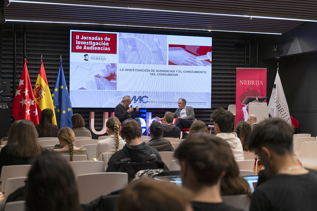 Las II Jornadas de Investigación de Audiencias Nebrija convocaron a alumnos y profesores en un objetivo común: dar a conocer a los principales actores de la medición de audiencia y de la actividad publicitaria, exponer las metodologías que utilizan para la recogida de información, y desvelar las tendencias y novedades hacia las que se dirige el sector. En los coloquios, la guerra por la atención en los dispositivos móviles, en las que está inmersa la publicidad, conformó uno de los asuntos que más interesaron a los jóvenes.
