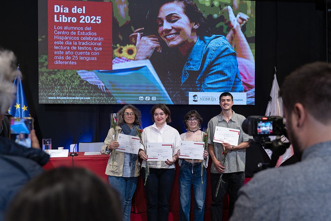 La lluvia de palabras está garantizada en la conmemoración del Día del Libro en la Universidad Nebrija. El Centro de Estudios Hispánicos, arropado por el Servicio de Biblioteca, reúne a lectores bajo el signo de la convivencia y la tolerancia entre pueblos e idiomas. La cultura arrecia. Hasta veintiuna lenguas ocupan su espacio en la habitual lectura de textos en prosa y poesía. Las previsiones daban un vendaval de pasiones librescas. Se cumplen: el placer solitario de leer se convierte en una celebración compartida de estudiantes letraheridos.