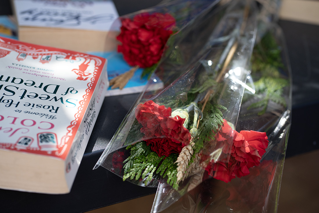 Después de estos piropos al libro, a todo lo que lo rodea y a todos los que lo rodean, la intensidad de las lecturas en atril cala en cada uno de los presentes. Detrás de los textos literarios y de un par de canciones en directo, se asoman una dedicatoria a un padre que inculca a su hija el amor por la poesía, una interpretación del himno del Celta de Vigo (si atendiéramos a la letra de C. Tangana, este equipo gallego sería el mejor del mundo) y otros secretos que se perderán entre las rosas rojas que cada valiente se lleva después de esparcir sus palabras al viento.