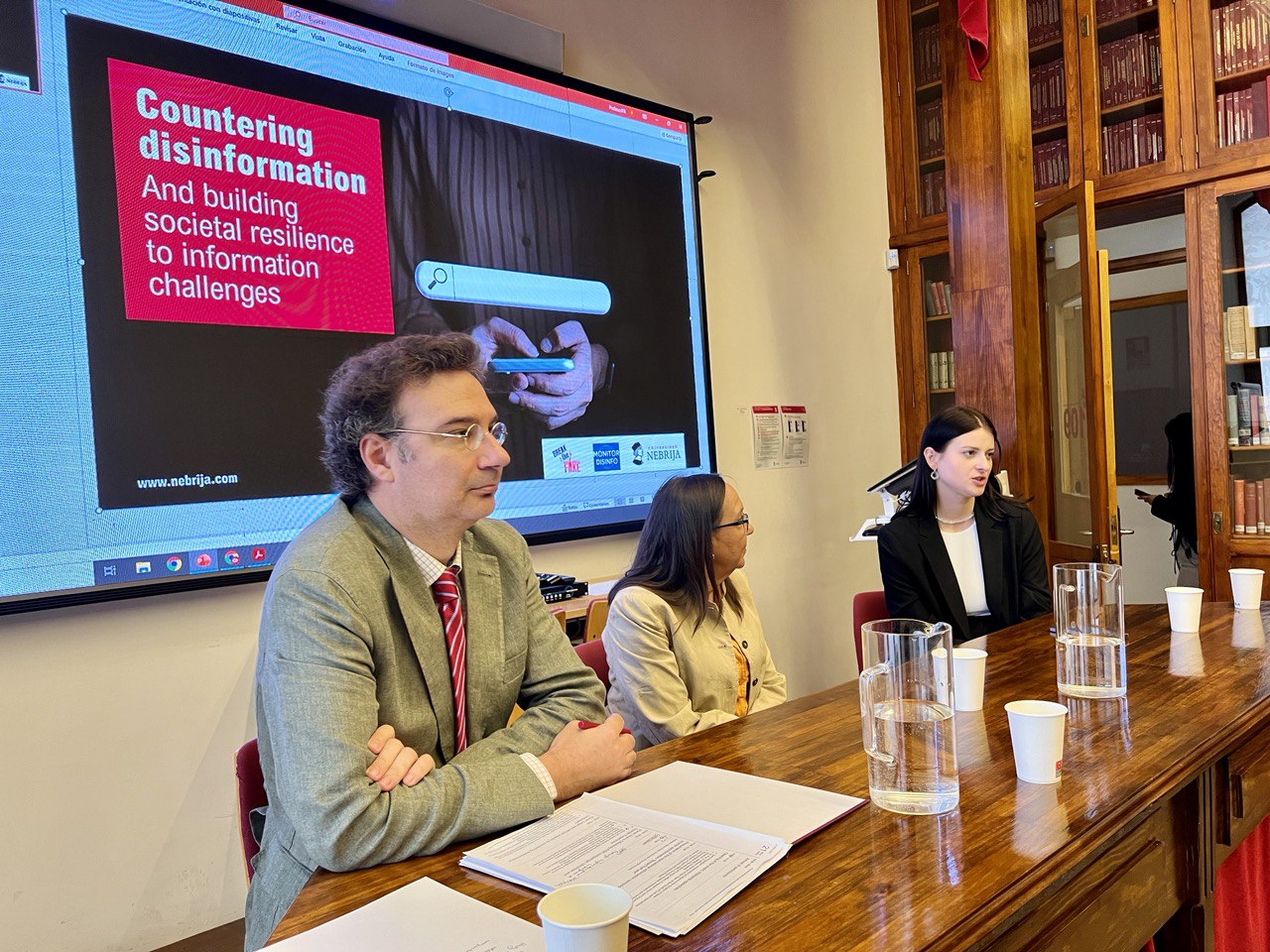 En la segunda parte del encuentro, moderada por el docente de Nebrija Carlos López, varias iniciativas brillaron en la lucha contra la desinformación y las denominadas campañas FIMI, acrónimo que alude a la “manipulación e interferencia de información extranjera”.