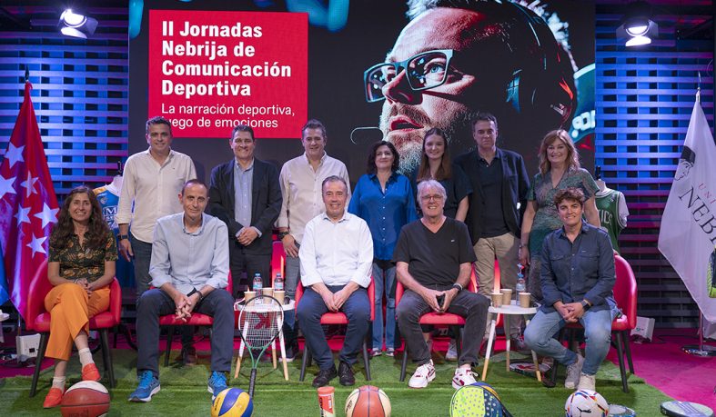 Como si de un evento deportivo se tratara, las II Jornadas Nebrija de Comunicación Deportiva (Sprint Nebrija) comenzaron con una foto de equipo con sus grandes protagonistas. En esta ocasión, no hubo deportistas de élite, ni himno, ni siquiera jurado, pero sí grandes referentes del periodismo deportivo de nuestro país. Sobre el césped improvisado puesto en el Salón de Actos de la Facultad de Comunicación y Artes de Nebrija, posaban, sonrientes, Mónica Marchante, Antonio Sánchez, Diego Miguel Fernández, Julia Luna, Siro López, Lourdes García Campos, Jesús María Pascual, Sonia Lus, Laura Álvarez y José María del Toro.