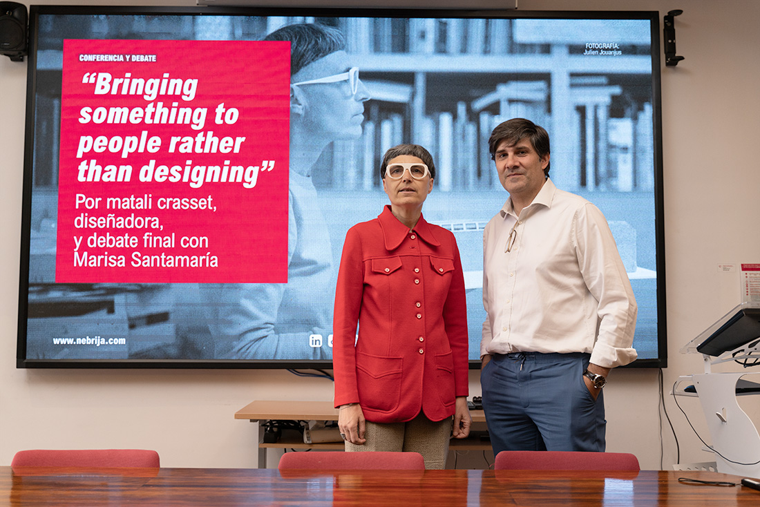 matali crasset (Châlons-en-Champagne, Francia, 1965), una de las diseñadoras más influyentes de las últimas décadas, pasea por el campus de la Politécnica y Ciencias Sociales en Madrid-Princesa con sus inseparables gafas y su peinado a lo tazón. Con puntualidad de relojero, atiende a los compromisos periodísticos y fotográficos (sabe posar con naturalidad) mientras charla con Fernando Moral, director del Departamento de Arquitectura de la Universidad Nebrija, y Marisa Santamaría, investigadora y periodista especializada en diseño y arquitectura. Ambos y un tropel de estudiantes la escoltarán en una conferencia donde pretende no transitar por lugares comunes y frases hechas.