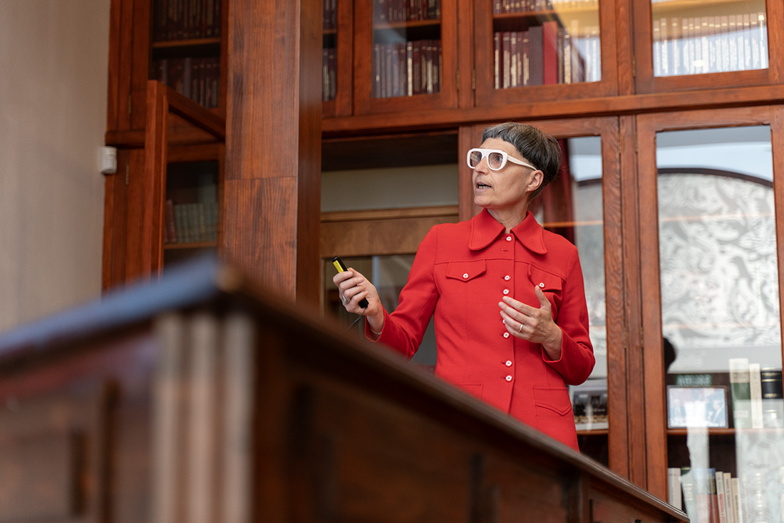 La profesora de la Haute École d’Arts Appliqués (HEAD) confiesa que no quiere cambiar nada de lo que está viendo en uno de los campus de Nebrija, que se siente cómoda aquí, pero su mente de diseñadora la delata. Sus ideas giran a toda velocidad y algo trama.