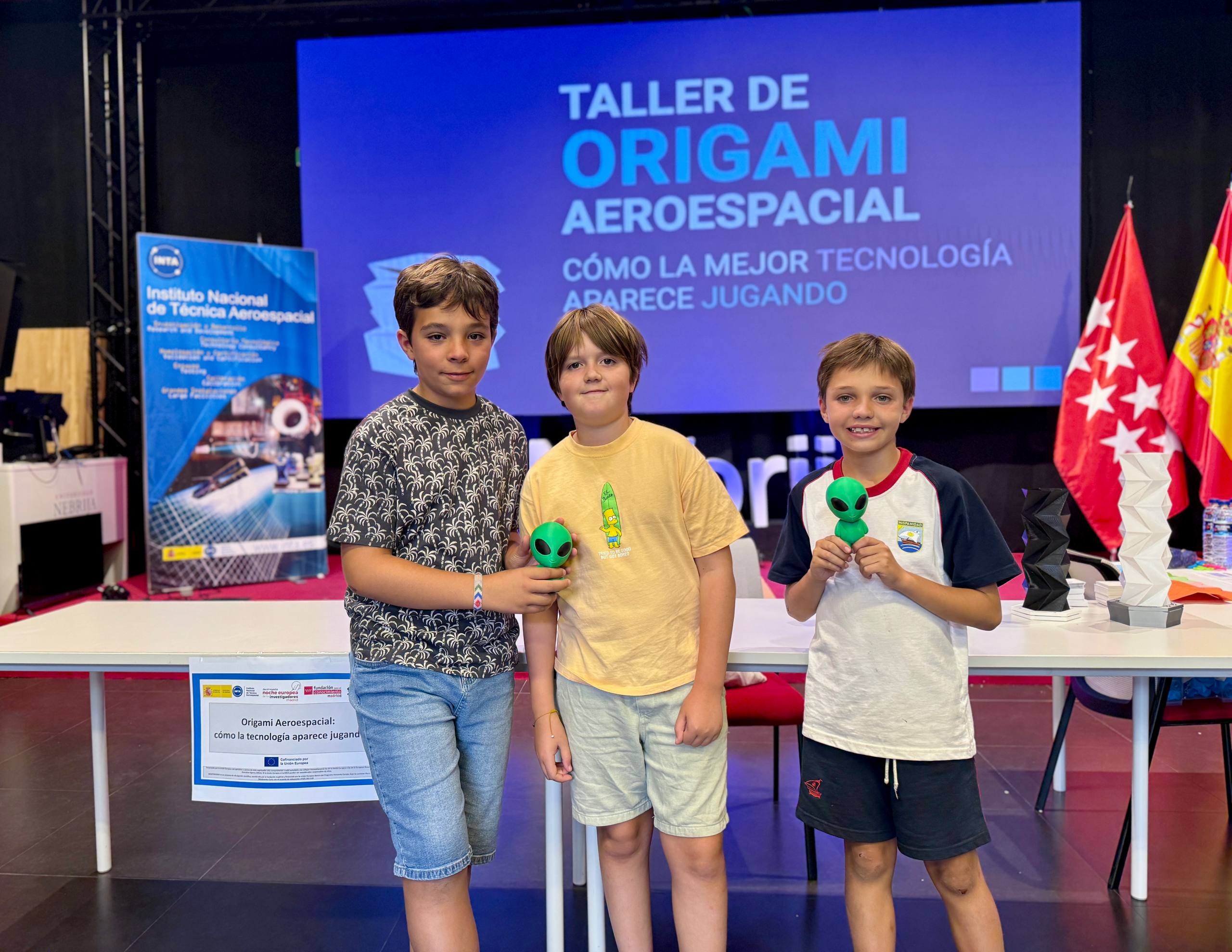 Los más pequeños pudieron dar rienda suelta a su creatividad en Arte espacial pixelado, una actividad de manualidades que mezcló astronomía y arte. Otros se sorprendieron con el Origami aeroespacial, aprendiendo cómo un simple pliegue puede inspirar estructuras espaciales tan avanzadas como las del telescopio James Webb.