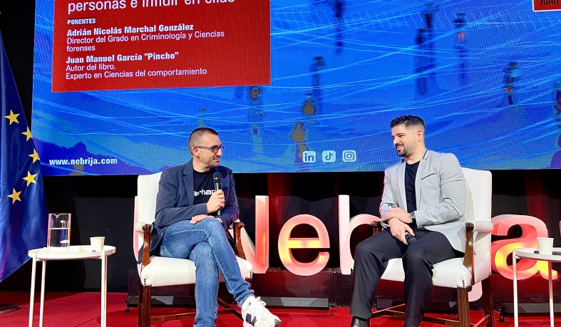 “Lea detenidamente las instrucciones de su subconsciente. Todo gesto de nerviosismo, boca de ostra o parpadeo reactivo será anotado por ‘Pincho’”. Con esta advertencia digna de Hollywood, arrancó en la Universidad Nebrija la presentación del libro “Ciencias del comportamiento: Domina la comunicación no consciente para leer a las personas e influir en ellas”. Su autor, el influyente guardia civil y experto en comunicación no verbal con más de cinco millones de seguidores en redes sociales Juan Manuel García “Pincho”, compartió con nuestros estudiantes valiosas claves sobre los gestos que aparecen en nuestro cuerpo cuando nos expresamos.