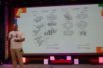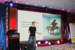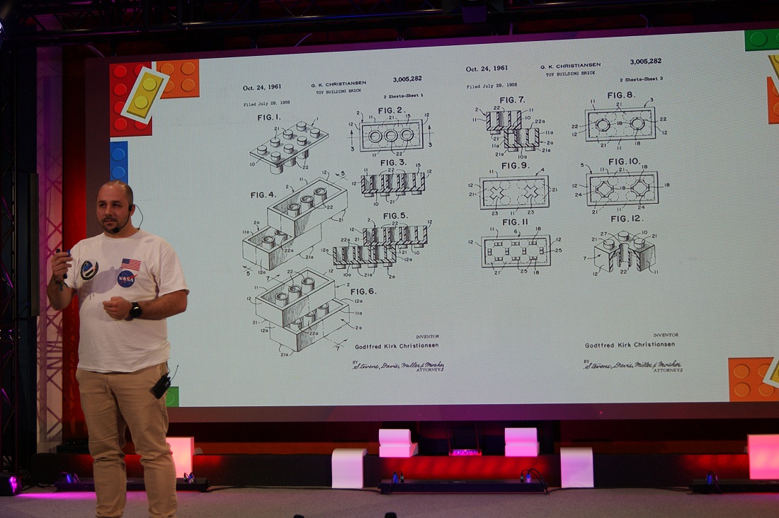 Su charla se apoya en las construcciones de Lego para explicar que la vida se compone de piezas pequeñas o grandes “que vamos encajando para formar algo más complejo”. Cada uno de los asistentes se lleva una pieza: la metáfora ha funcionado.
