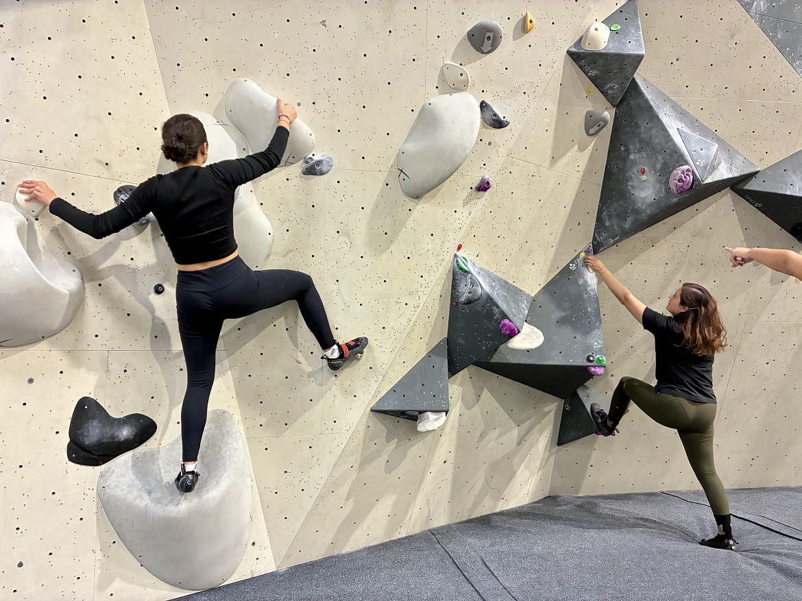 Elementos como el boulder, que permite los desplazamientos laterales como una primera toma de contacto en pared con presas de múltiples tamaños y formas, y los agarres, forman parte de esta primera parte de la sesión: en regleta, cantos romos, tridedos, bidedos, monodedos y pinzamientos.