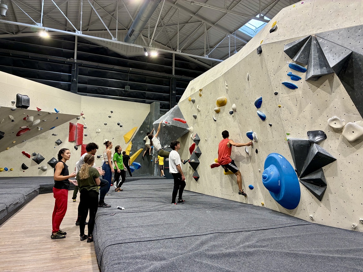 Los estudiantes más aventajados pueden disfrutar de las paredes con desplome y auto asegurados.