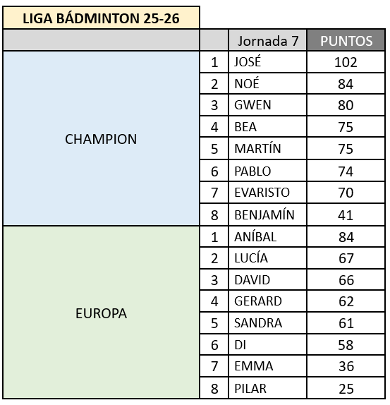 Tras la jornada 7, José Casarrubios del Grado en Ciencias de la Actividad Física y el Deporte y Aníbal Ruiz del Doble Grado de Artes Escénicas y Comunicación Audiovisual lideran la clasificación en sus respectivas competiciones.