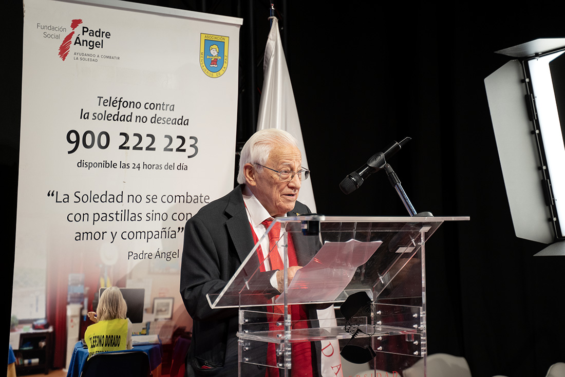 En esa solicitud a la ONU para proclamar el 16 de diciembre como Día Internacional Contra la Soledad No Deseada está al frente el Padre Ángel, que dejó el mensaje más emotivo: “Se me nota en la cara la felicidad y la emoción de estar aquí con todos vosotros. Se me hace un nudo en la garganta cada vez que me encuentro con una persona sola. La soledad tiene remedio: amor y compañía, porque la verdadera felicidad está en poder amar y sentirse amado. Tengo muchos años y he podido cumplir muchos sueños. Ahora quiero cumplir otro más: que nadie se sienta solo”.