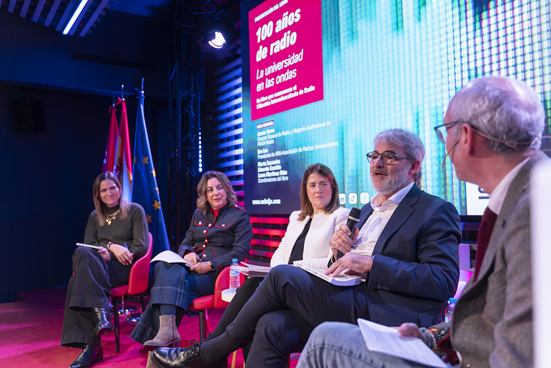 El libro presentado en sociedad —100 años de radio. La universidad en las ondas— sitúa en la vanguardia de la comunicación tres grandes temas distribuidos en los siguientes bloques: la radio como plataforma de aprendizaje; pasado, presente y futuro de la radio en su centenario; y casos de estudio en el ámbito radiofónico y académico.
