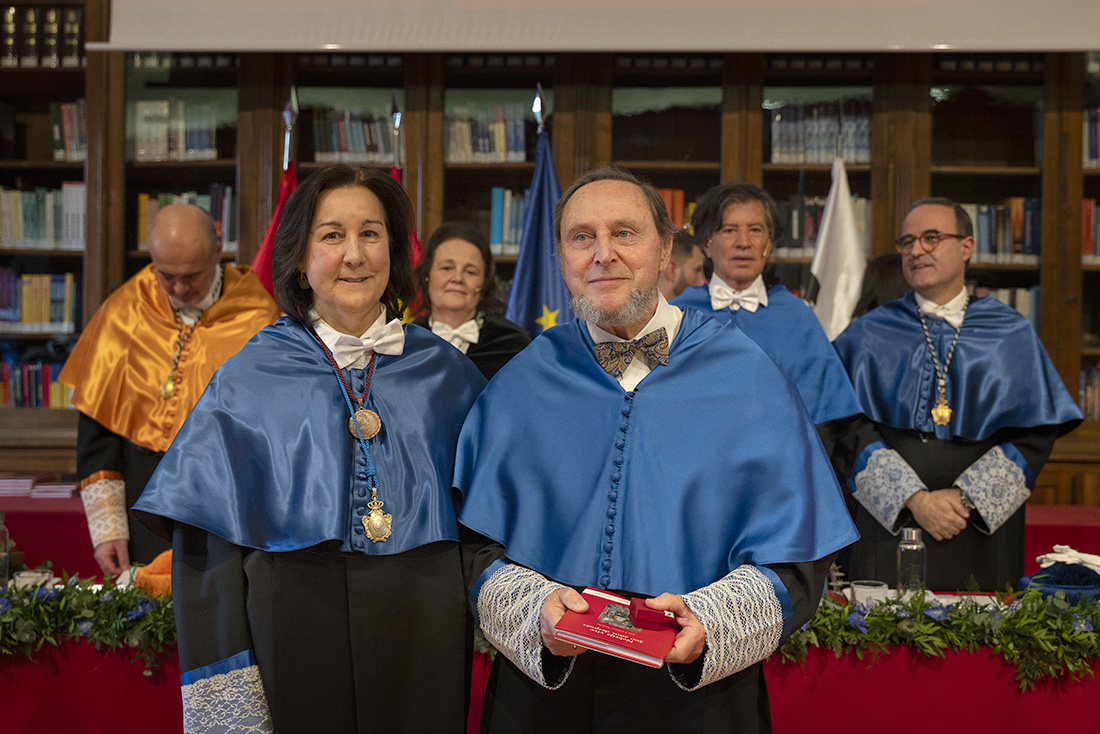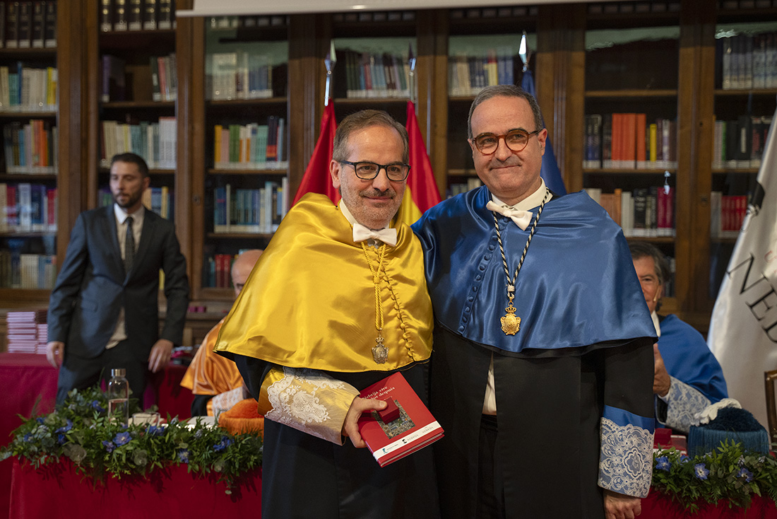 Manuel Villa-Cellino, presidente del Consejo Rector, hizo entrega del libro e insignia de plata al profesor Juan Arturo Rubio Aróstegui por haber obtenido la acreditación como catedrático.