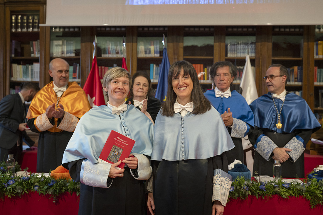 La rectora impuso la medalla de doctor y el birrete laureado a los profesores que han alcanzado el grado de Doctor por la Universidad Nebrija durante el curso académico 2024-2025: Melanie Labusch (doctorada en educación y procesos cognitivos), José Francisco Rocabado Rocha (doctorado en Educación y Procesos Cognitivos), María Inmaculada Melero Carrasco (doctorada en Lingüística Aplicada a la Enseñanza de las Lenguas), Manuel Marín Gastón (doctorado en Seguridad y Análisis de Riesgos y Conflictos), Javier Miguel de la Uz López (doctorado en Seguridad y Análisis de Riesgos y Conflictos) y Alfonso de Hoyos Fernández de Córdova (doctorado en Tecnologías Industriales e Informáticas).
