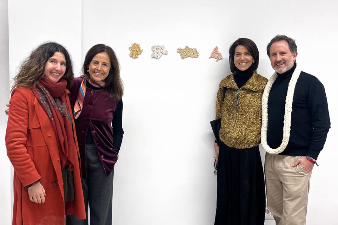 Cova Ríos expone “Vellocinos de Oro Blanco”, una obra que “podría entenderse como una metáfora territorial y material de aquellas zonas españolas donde la oveja merina se concentra y se produce ese “oro blanco” que es su lana: Extremadura, Castilla y León, Andalucía y, aunque en menor medida, Madrid”, asegura la artista. En su propuesta, el “oro blanco” se teje en láminas metálicas de oro, plata, latón y cobre, en las que “cada hebra de lana se convierte en eslabón y urdimbre, transformando las obras en una cartografía táctil de las dehesas del sur y oeste peninsular”.