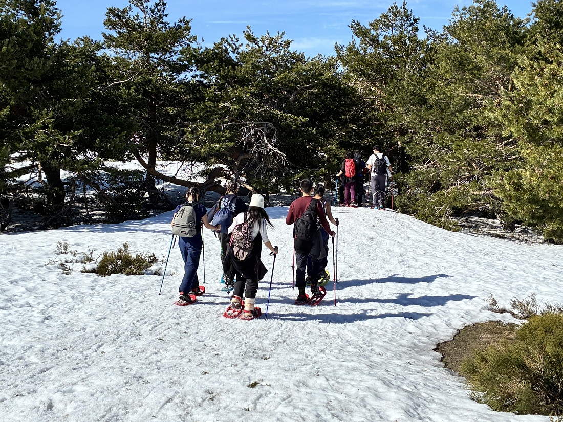 El día 27 de febrero ha tenido lugar la jornada de senderismo con raquetas de nieve prevista para este curso en el programa del Club de Viajes, Naturaleza y Aventura. Un total de 40 alumnos pudieron disfrutar por la sierra de Madrid con un trekking sobre distintos recorridos en el Parque Nacional de Guadarrama, en el entorno de los 7 Picos y Camino Schmidt