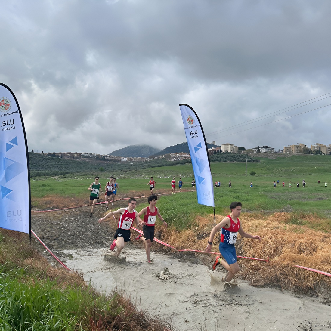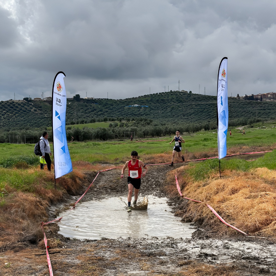 El barro fue protagonista y también símbolo del espíritu del campo a través en estado puro en este Campeonato de España Universitario disputado en Jaén, una prueba celebrada en el circuito anexo al estadio Sebastián Barajas de la ciudad andaluza en una jornada marcada por la exigencia del terreno y el esfuerzo de los más de 150 atletas participantes. Las lluvias de los últimos días dejaron un trazado pesado, con zonas resbaladizas y tramos en los que cada zancada exigía un plus de resistencia. Ese escenario, lejos de restar espectáculo, devolvió a la competición la esencia clásica del cross: barro, lucha y capacidad de adaptación. Fue un campo a través con aroma a tradición, en el que la fortaleza mental resultó tan decisiva como la preparación física.