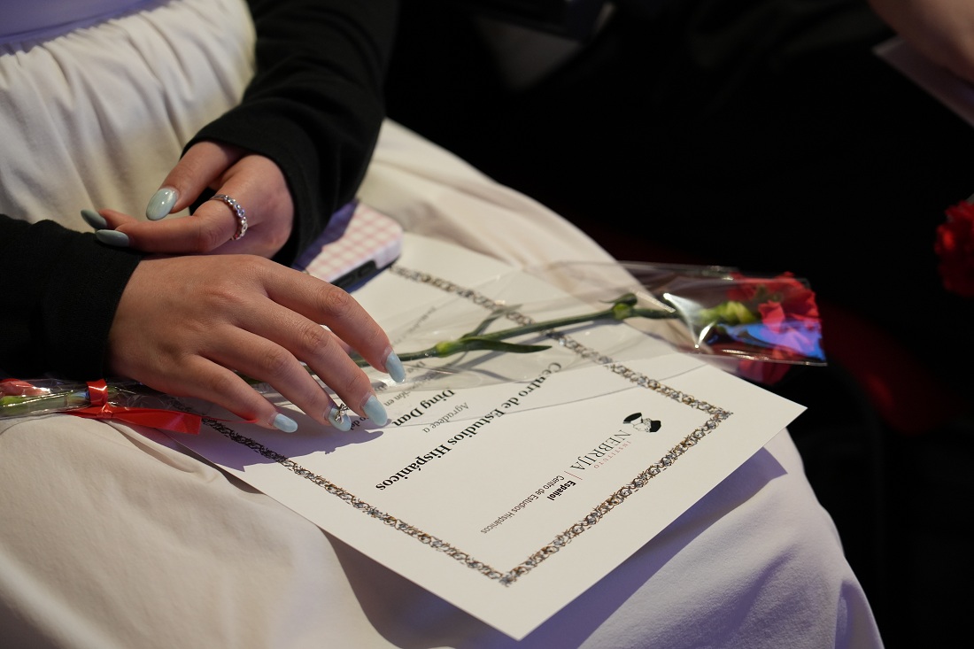 Para promover la literatura y fomentar precisamente la lectura entre los estudiantes, Ana Carballal, directora del Instituto Nebrija del Español, celebró los libros y lo que representan: “la imaginación, la libertad de pensamiento y la belleza del lenguaje”. En su discurso aparecieron Miguel de Cervantes, William Shakespeare y Gonzalo Celorio Blasco, el Premio Cervantes 2025, escritor de novelas, ensayos y profesor de literatura hispanoamericana en la Universidad Nacional Autónoma de México (UNAM).
