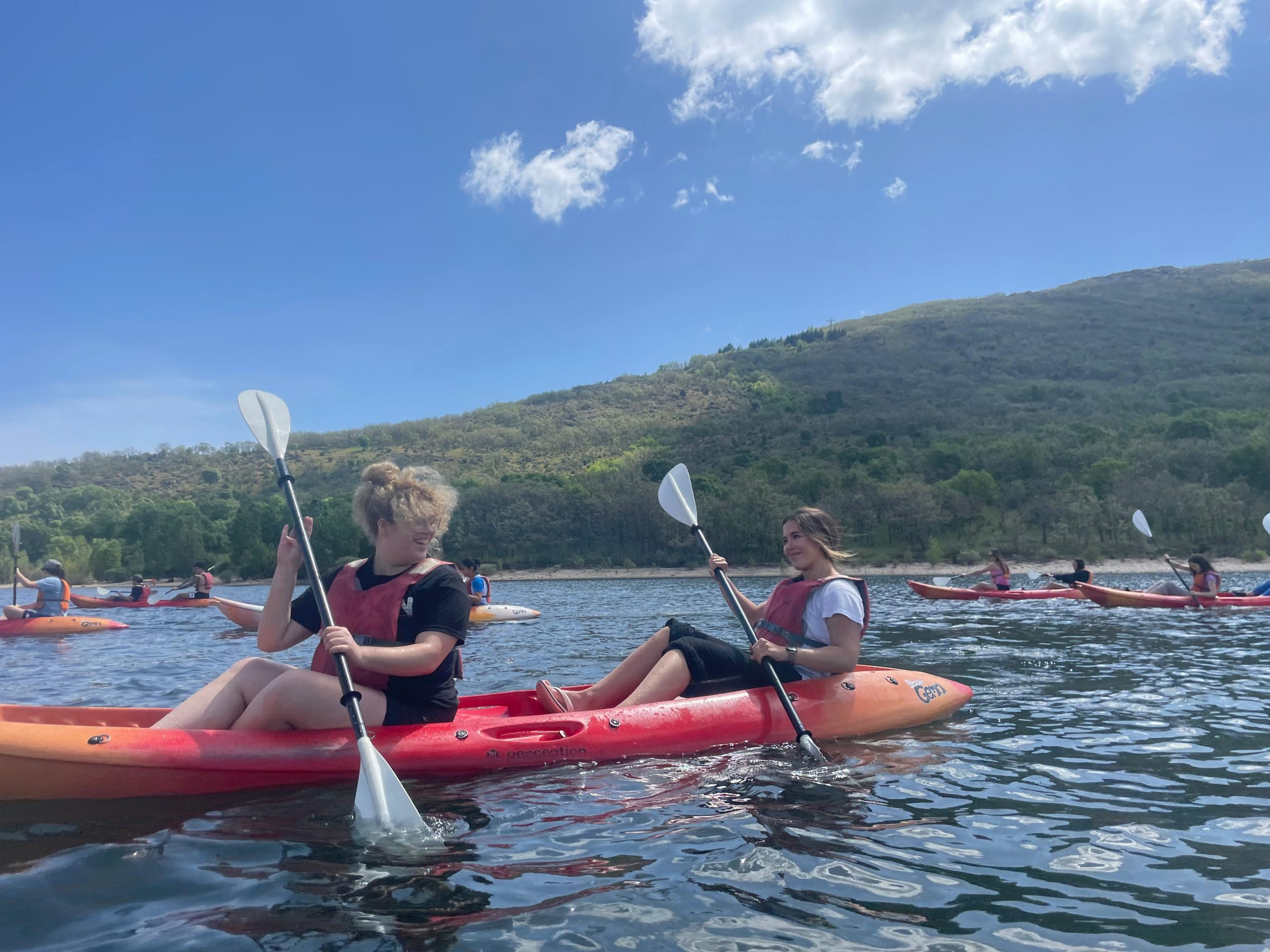 El pasado domingo 26 de abril un grupo de treinta estudiantes disfrutó de una jornada de piragüismo en el embalse de Pinilla (Lozoya) organizada por el Club de Viajes, Naturaleza y Aventura.