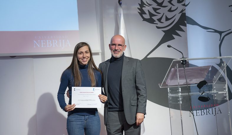 Juan Antonio Rubio, director de la Escuela de Doctorado de Universidad Nebrija; Itziar Laka, catedrática de Lingüística en la Universidad del País Vasco, José Antonio Hinojosa, profesor titular de Psicología de la Universidad Complutense; Raquel Caerols, profesora e Ciencias de la Información de la Universidad Complutense; Susan Martín Leralta y Nuria Camuñas, decana y vicedecana de la FLE de la Universidad Nebrija consideraron que la presentación de Andrea González con su historia de amor inconclusa por culpa del idioma fue la más dinámica y profesional de las siete finalistas.