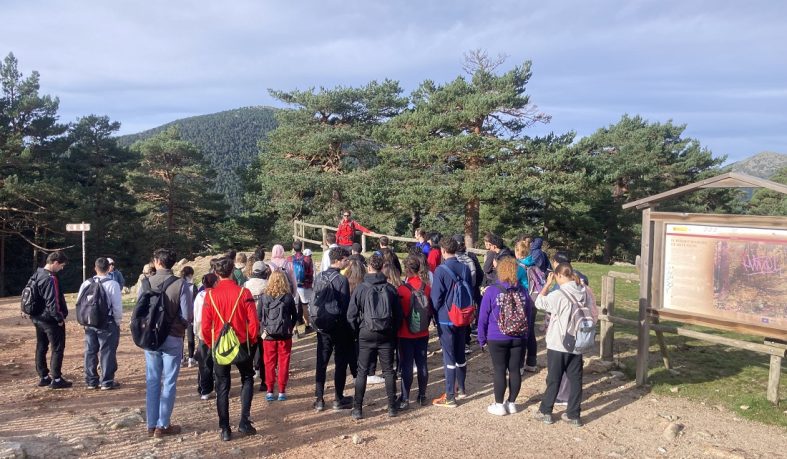 La ruta comenzó en el Puerto de Navacerrada, tomando el Camino Schmid para ascender al Collado Ventoso y tras un breve descanso, alcanzar el Mirador de la Reina para disfrutar de las espectaculares vistas de todo el valle de Fuenfría, Escorial y Abantos. Tras esta parada, alcanzamos el Puerto y Fuente de la Fuenfría, punto por el que transcurre el Camino de Santiago, lugar en el que repusimos fuerzas y desde el cual los estudiantes iniciaron el descenso por la Calzada Romana y la Borbónica que transcurre por todo el valle y finaliza en las Dehesas de Cercedilla, punto final de la jornada tras 13 kilómetros de recorrido.
