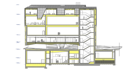 La intervención de los arquitectos aumenta la superficie existente de la antigua Central de 2.000 metros cuadrados, a 8.000 metros cuadrados, distribuidos en 7 niveles.