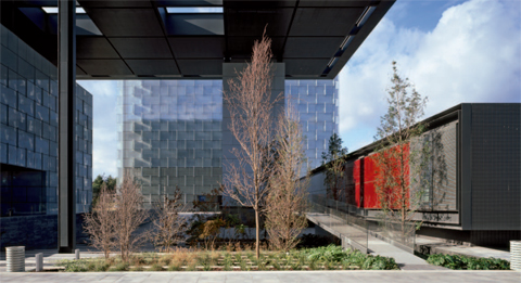 Un único tipo de vidrio –creado especialmente para el proyecto- y una extensa cubierta de protección y captación solar, evitan una percepción dispersa del conjunto, cohesionándolo como un único edificio, como una única empresa.