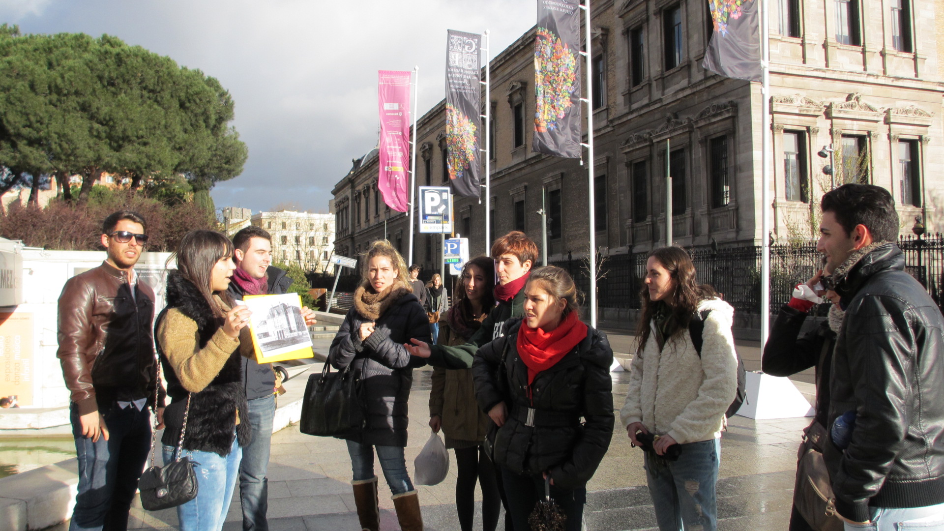 Los alumnos de Historia de la Arquitectura, pertenecientes a los grados de Fundamentos de la Arquitectura y Diseño de Interiores, recorrieron el pasado 2 de abril el eje urbano Prado-Recoletos en Madrid. A medida que iban exponiendo el análisis pormenorizado que de los principales hitos arquitectónicos del recorrido habían realizado, se plantearon interesantes cuestiones acerca de los edificios estudiados, que permitieron distintas aproximaciones y nuevas percepciones de los mismos.