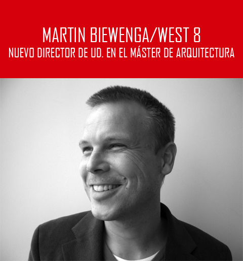 Durante el presente curso 2014-2015 se ha incorporado como Director de Unidad en nuestro Máster de Arquitectura, Martin Biewenga, socio principal de WEST 8 “Urban Design & Landscape Architecture”.