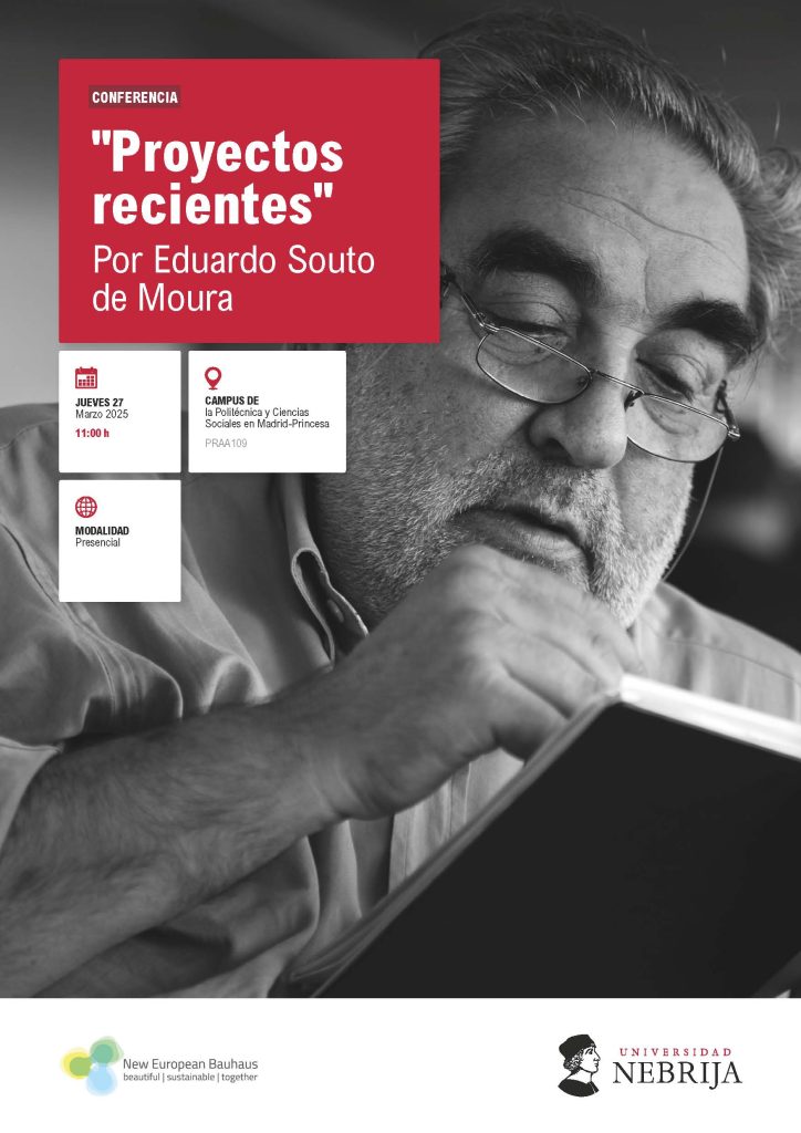 «Proyectos recientes» por EDUARDO SOUTO DE MOURA. 27.03.25. Arquitectura y Construcción. POLITÉCNICA – Nebrija 20 marzo, 202525 marzo, 2025 fmoral Deja un comentario Enlace streaming: https://eu.bbcollab.com/guest/dbec4ac8f52d499f9d5a7fbf353ffd2f