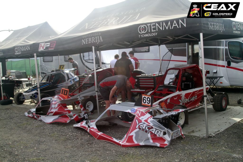 Prestando atención al pelotón de la Copa de España de Promoción, Gorka Ezenarro y Mario Burgueño volvieron al arenoso ruedo bajo el amparo de Nebrija Performance Engineering, escuadra donde los jóvenes ingenieros tuvieron que exprimirse a fondo para, entre otras tareas de reparación y mantenimiento, tratar de optimizar unos setups que fueron piedra de toque sobre la que orbitó todo lo demás. La camaleónica superficie recorrida en sentido antihorario y la gran variedad de curvas que incluían giros a alta velocidad obligaban a hacer primar esta cuestión técnica sobre cualquier otra, agudizando el aprendizaje cosechado tras cada manga. Así, las sesiones que conformaban los entrenamientos libres del viernes se zanjaron con 5ª y 6ª posición de Gorka y 8ª y 9ª plaza de Mario, sabedores de que el verdadero fin de semana competitivo estaba a punto de echar a rodar. El arranque de calificación se saldó con 9ª y 11ª posición para ambos, respectivamente, siendo éstas plazas de salida que los dejarían rodeados de amenazantes bólidos rivales tras ello. Los resultados combinados de las 3 mangas clasificatorias se consumaron con los siguientes números: 11ª, 15ª y 8ª plaza ocupada por un Gorka que se hizo sitio en la Final absoluta gracias a la 10ª posición en la tabla acumulada y, por otra parte, 15ª, 17ª y 11ª plaza para un Mario que, a causa de varios trompos que lo dejaron en 16º lugar en el balance acumulado, no pudo conseguir hacerse hueco en dicho asalto definitivo. El toque con un rival al comienzo de la carrera final provocó un pinchazo que forzó a Gorka a retirarse prematuramente de la contienda más esperada.